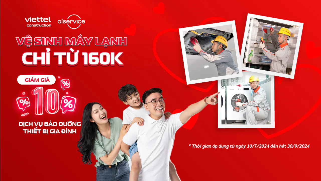 Nhanh tay gọi ngay đến Hotline 1800 93 55 để đặt lịch bảo dưỡng để nhận ưu đãi hấp dẫn từ Viettel Construction. Đừng bỏ lỡ cơ hội tiết kiệm chi phí và duy trì hiệu suất hoạt động tối ưu cho thiết bị gia đình của bạn!